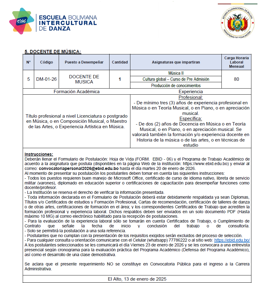 Lista de postulantes Seleccionados de la Convocatoria Publica EBIDCONV 01-2026